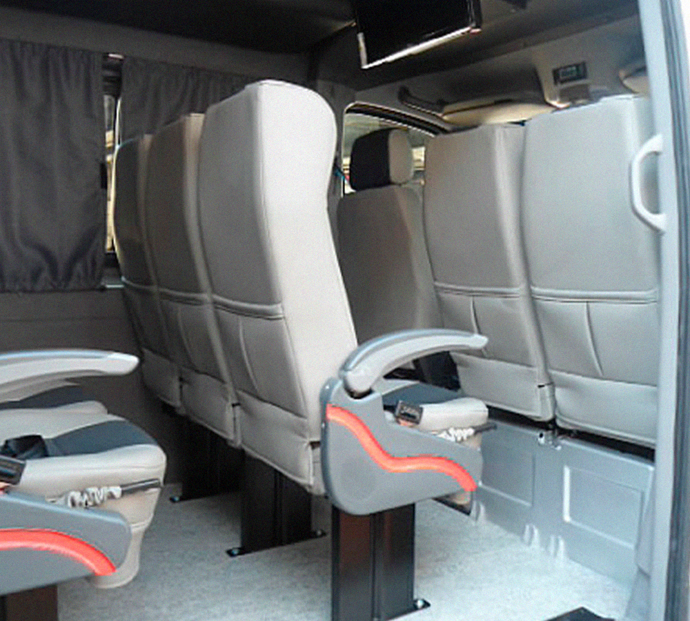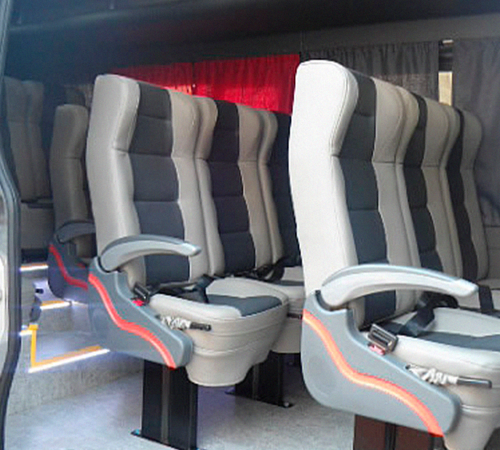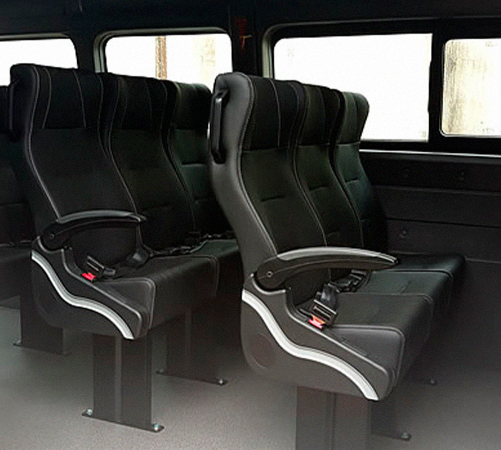Transporte de passageiros escolar, fretamento, turismo ou executivo. Montamos a configuração de bancos, bagageiros e acessórios que melhor irá atender o seu tipo de transporte. Sempre respeitando as diretrizes segurança das Portarias do CONTRAN.