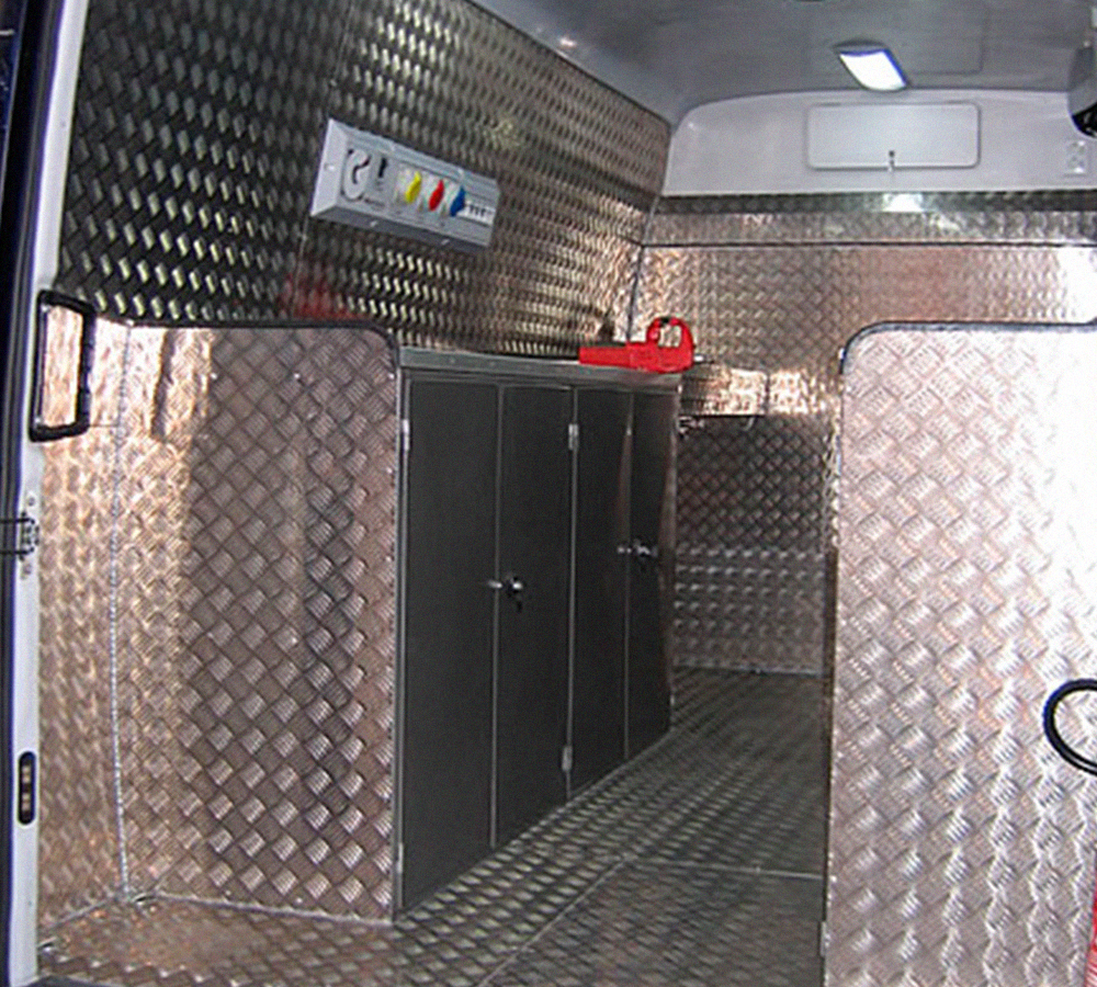 Implementação dos acessórios como sinalização, caracterização externa, revestimentos, suportes e confecção de celas para um veículo adequado ao uso dos agentes de segurança.